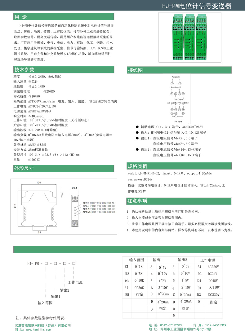HJ-PM電位計信(xìn)號變送(sòng)器是在自動(dòng)化控製係統中對電位計信號進行