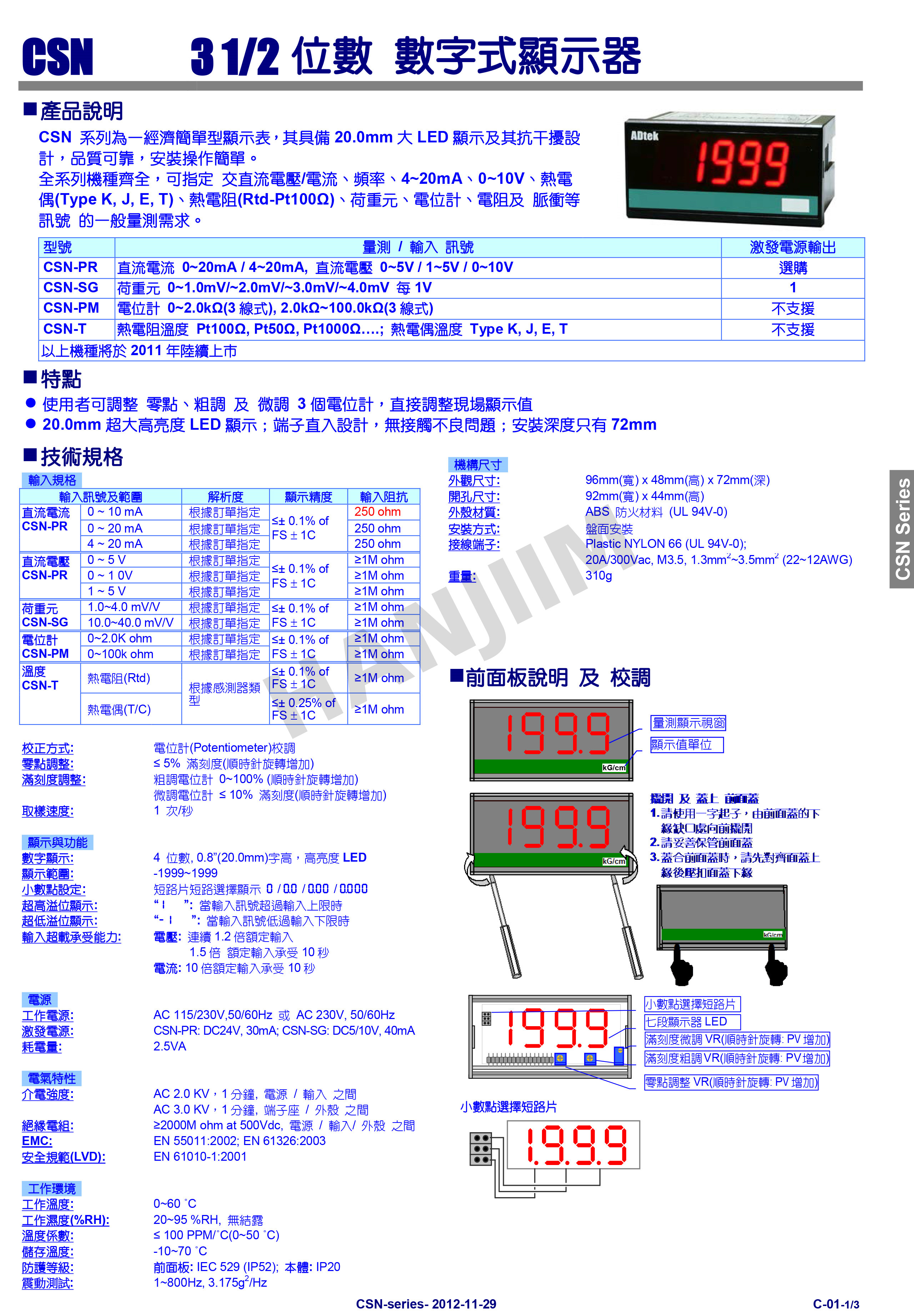 台灣ADTEK銓盛 CSN係列顯示控製儀表(biǎo)