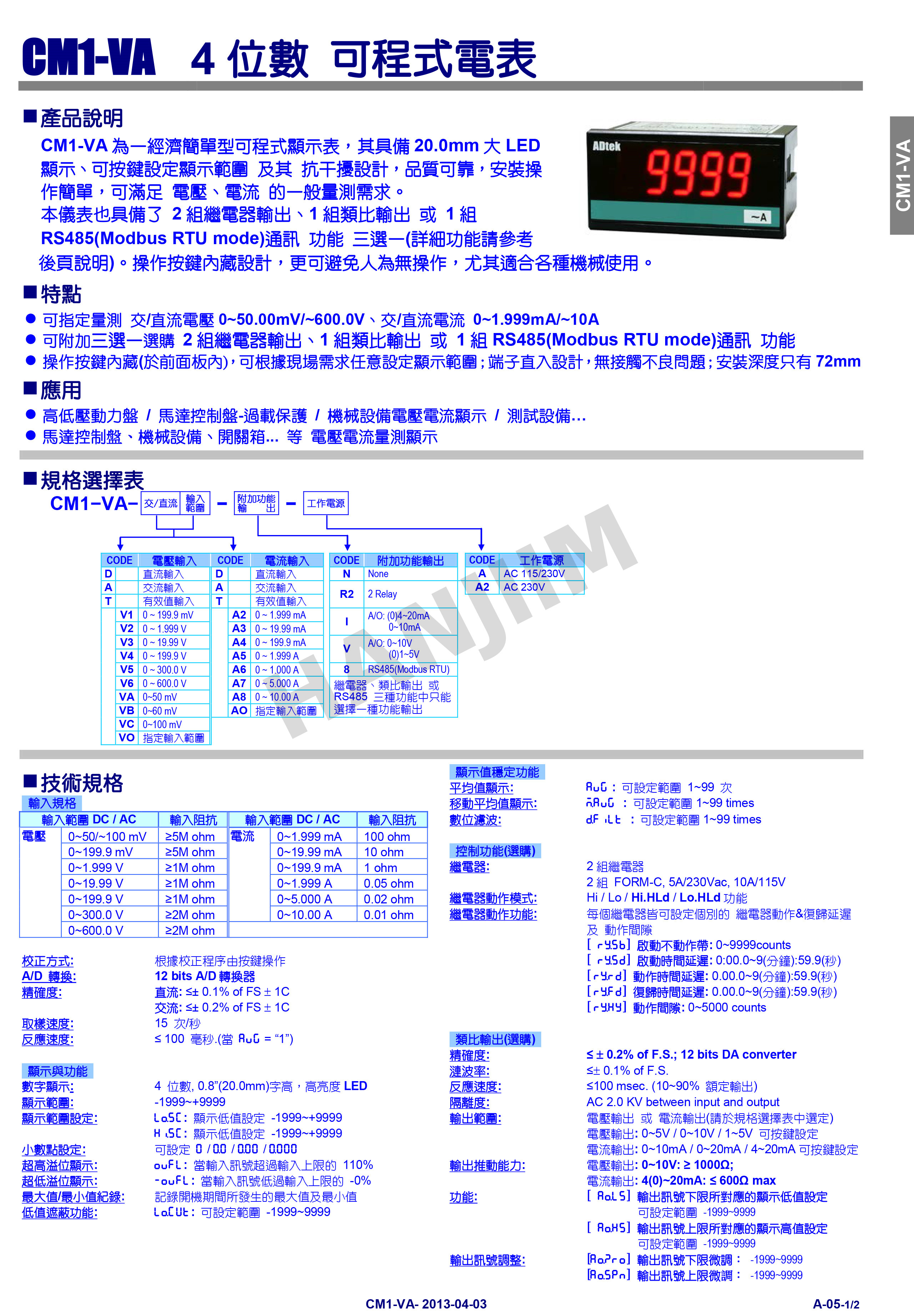 台灣ADTEK銓盛CM1-VA 4 位數 可程(chéng)式電表