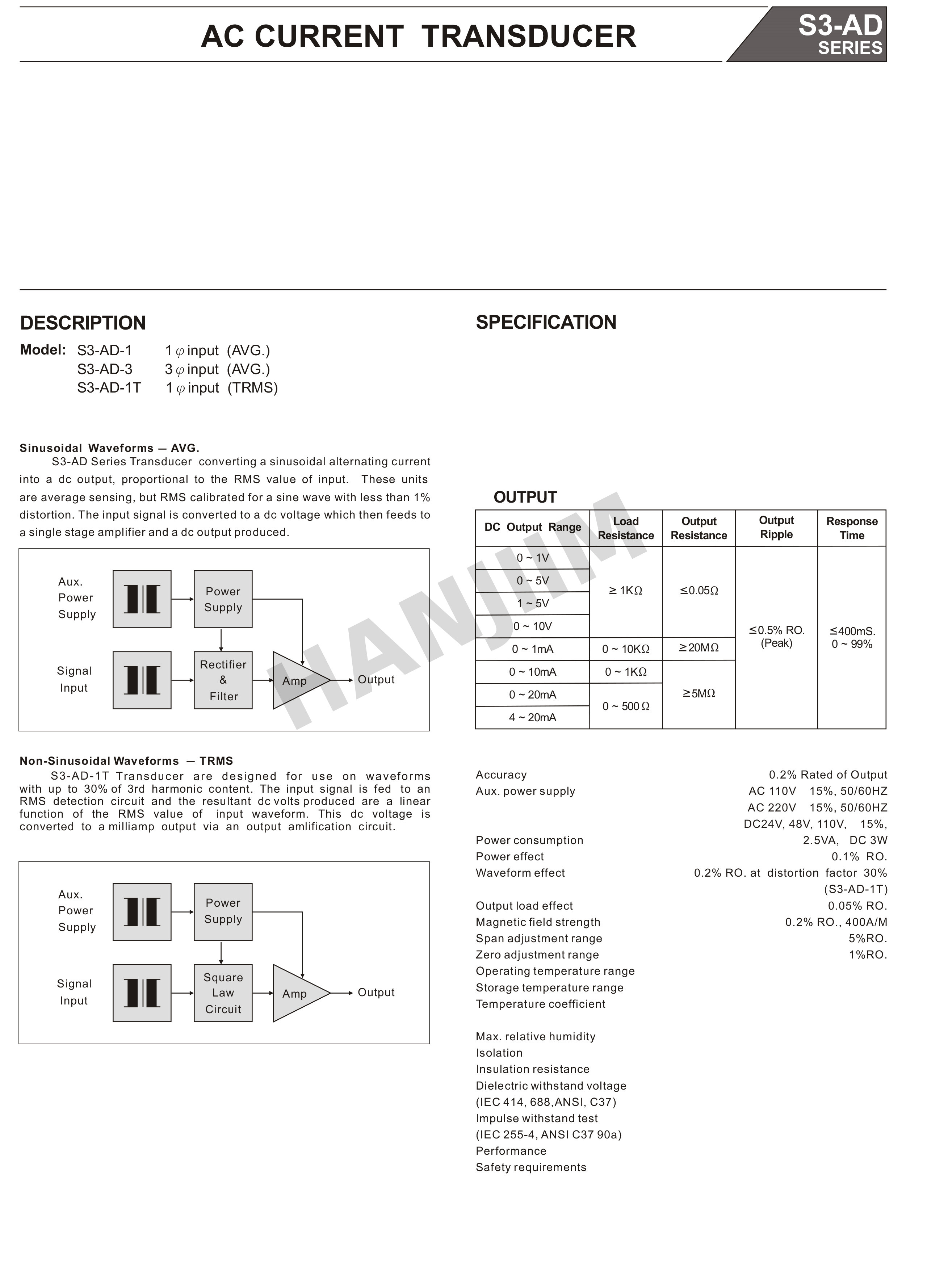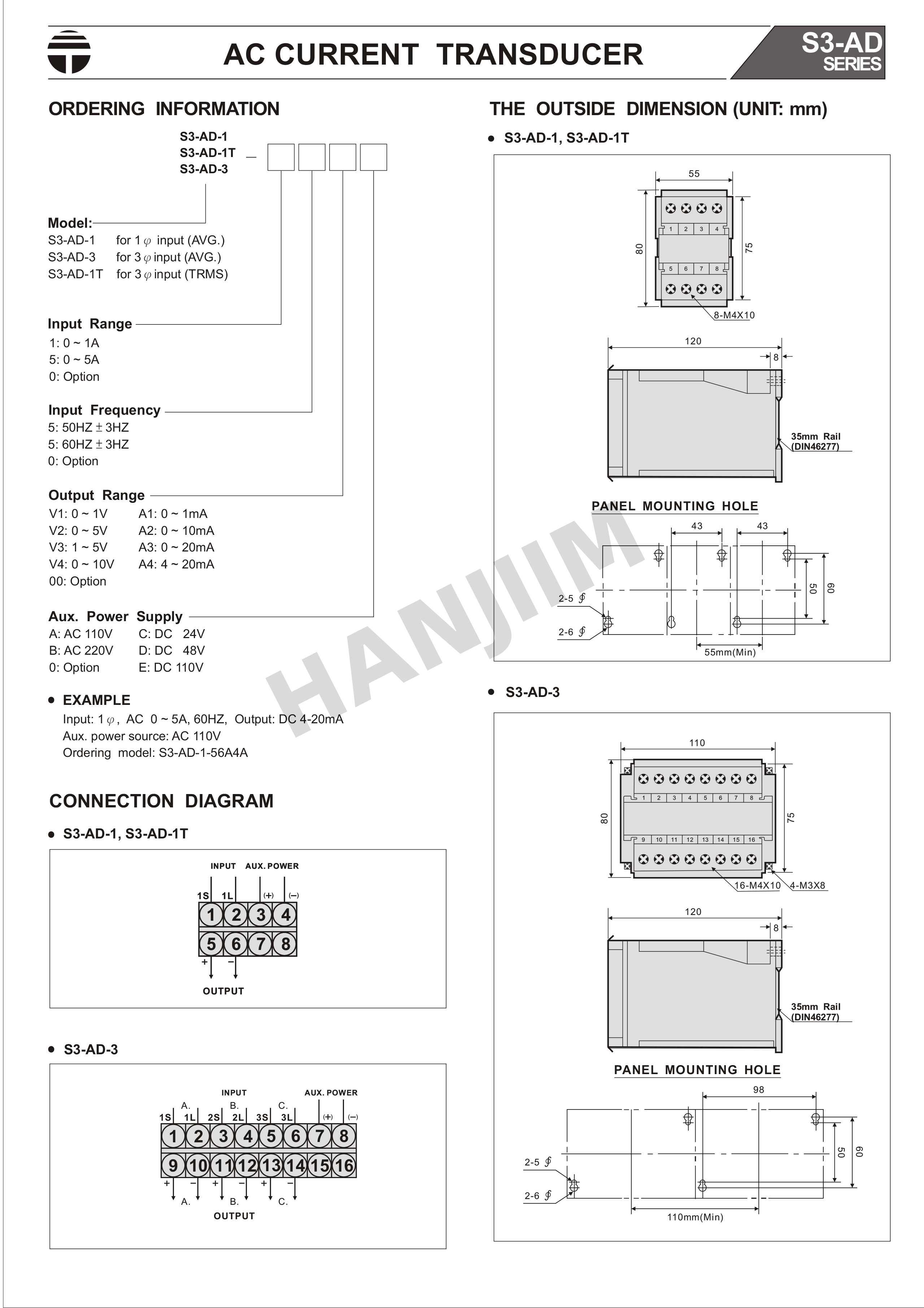 台灣TAIK台技 S3-AD單相電流變送器 轉換器